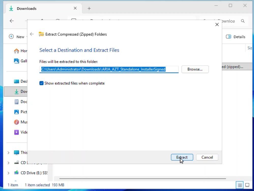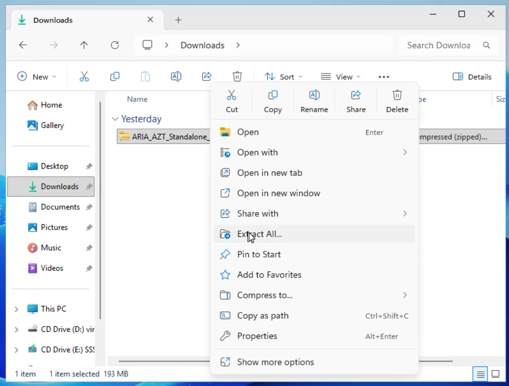 - Navigate to the installer file. Right-click the file and select Extract All...