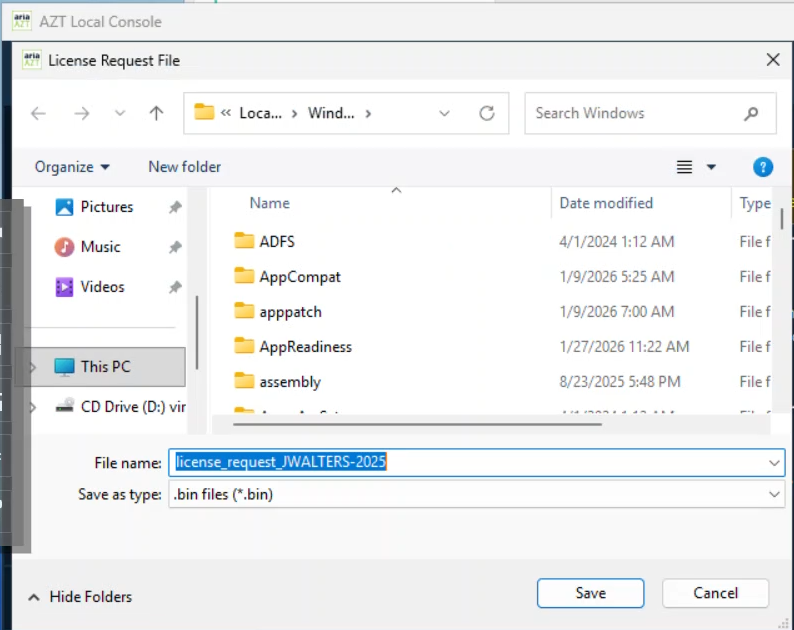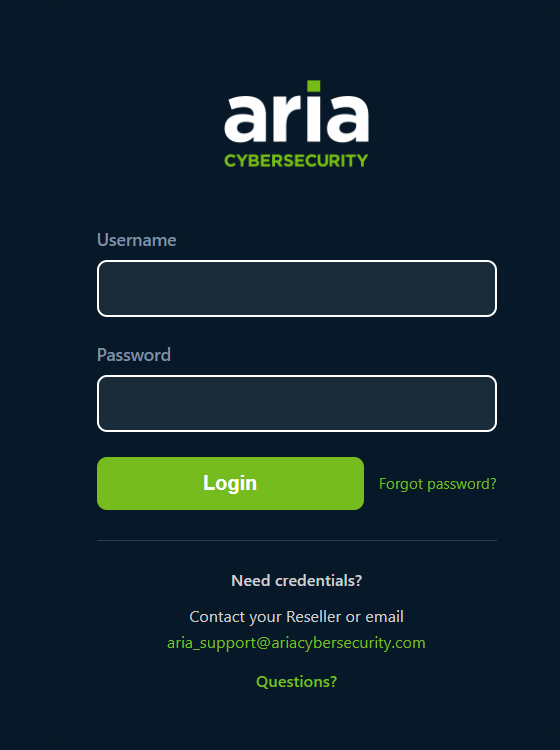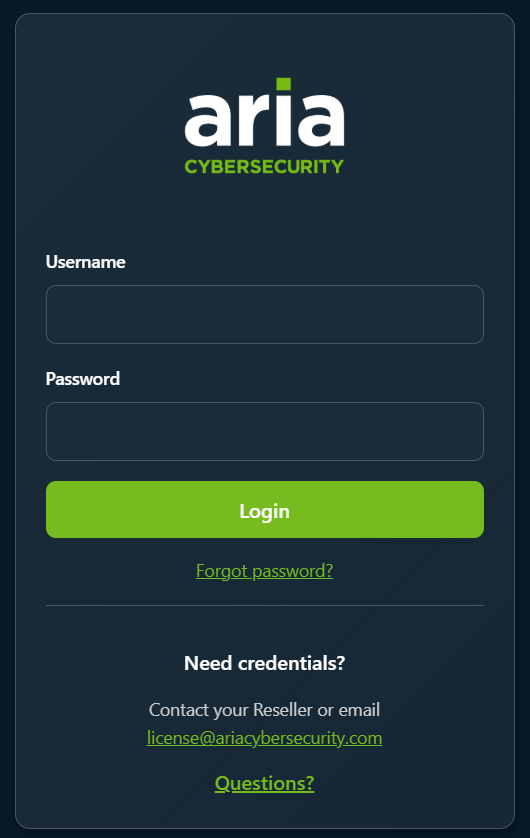 Note: If you system is airgapped and not connected to the internet, you will need to move the license request file to a flash drive and separately upload the license request file using a device connected to the internet. - Enter the username and password provided to you by ARIA or your sales representative. Select Login.