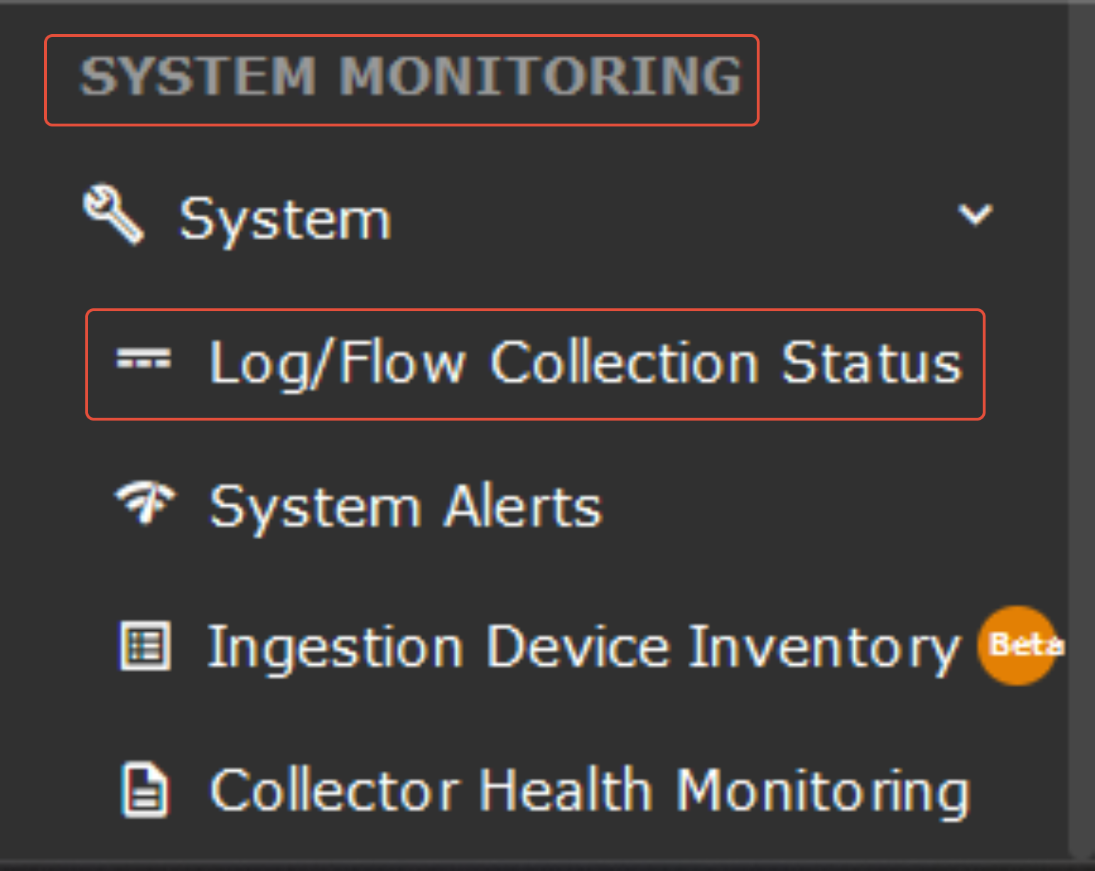 Navigate to System Monitoring and drop down to System >> Logs/flows Collection Status.