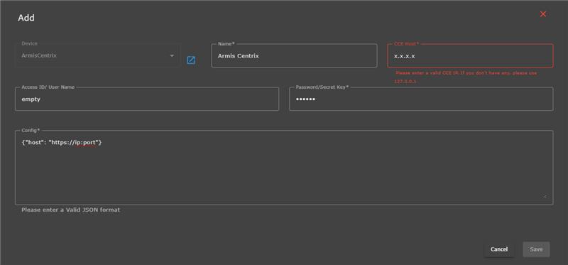 Armis Central Manager Host (IP: Port)