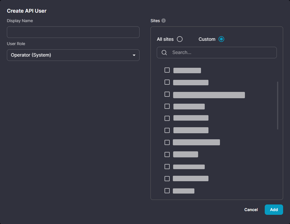 - Enter a name for the API user and select the appropriate role.