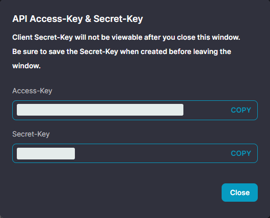 - Click Add and save the displayed Secret Key securely (shown only once).