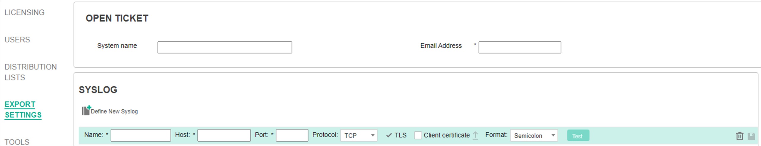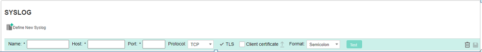 Click the “+” icon to define a new Syslog destination.