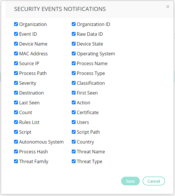 Check the boxes for fields to be included in the Syslog messages, such as: