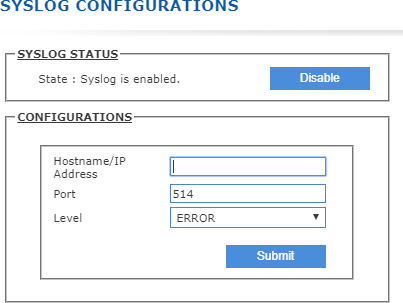 Submit Settings: Click "Submit" to save all syslog configuration settings